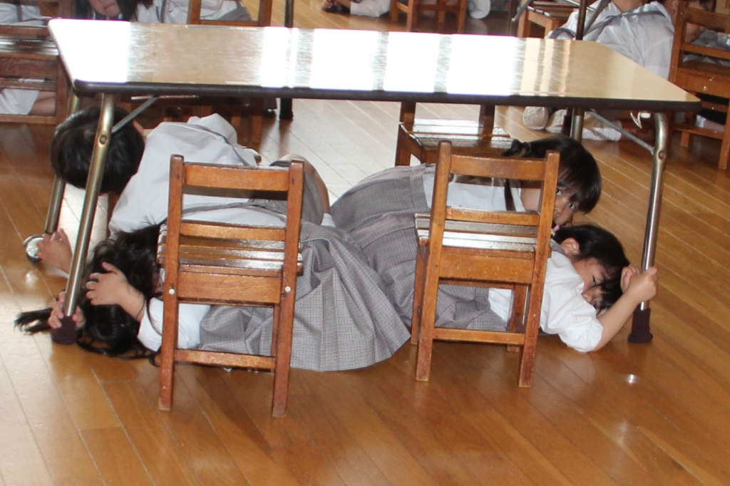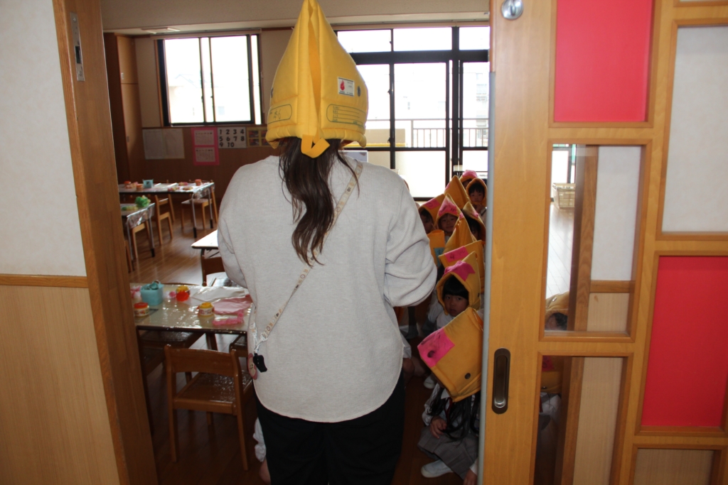 今日は、非常事態を伝えるサイレンを聞いて、それぞれのお部屋で指導を行いました。