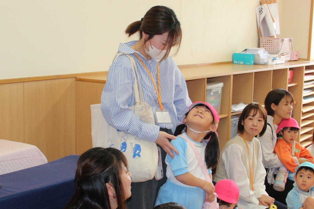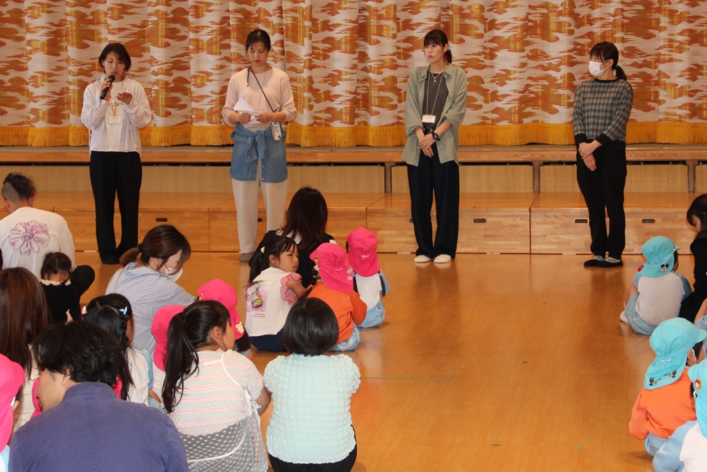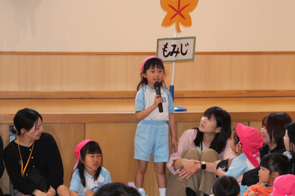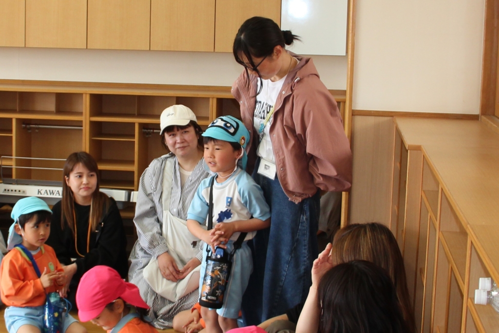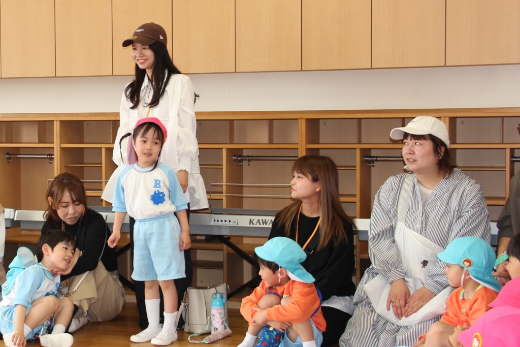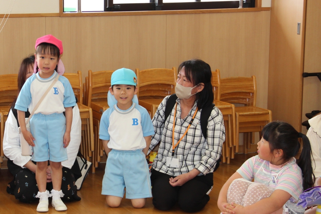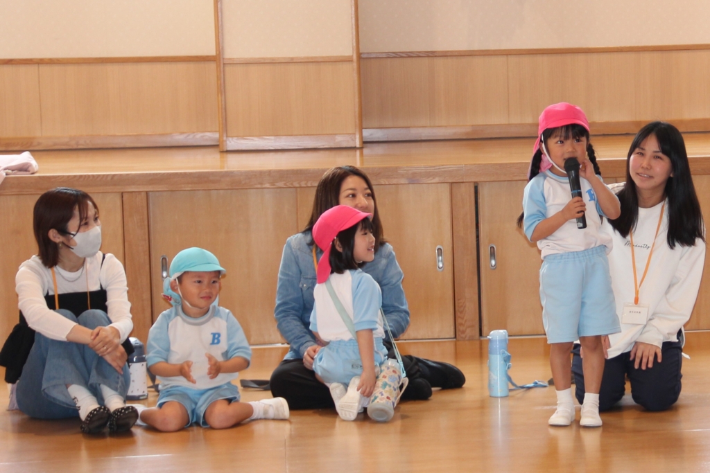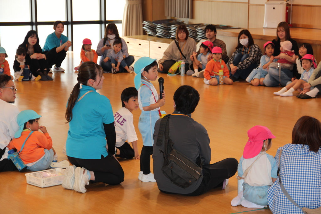 はきはき自己紹介するお友だち、恥ずかしがっておうちの方に紹介してもらっているお友だち、いろいろでした。