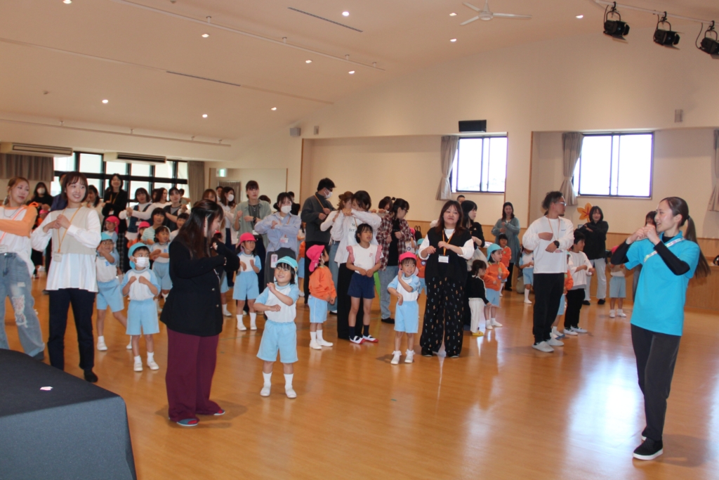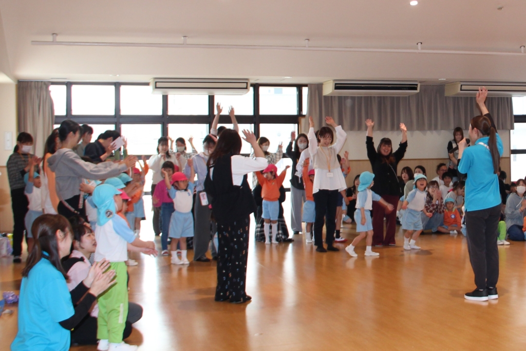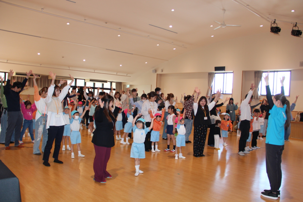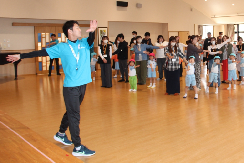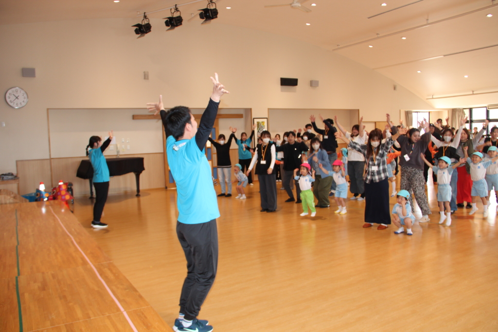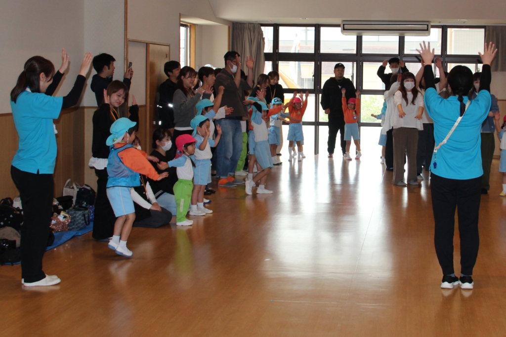 次に準備運動を兼ねて、アンパンマン体操をみんなでしました。