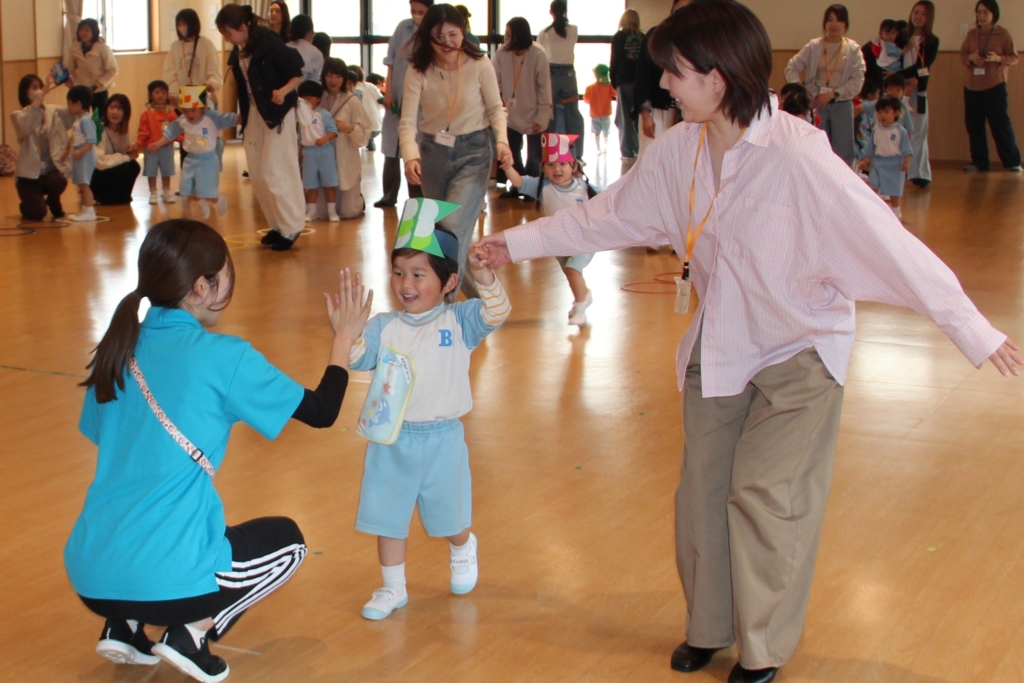 そして、担任の先生とタッチ!して、リレーしていきます。